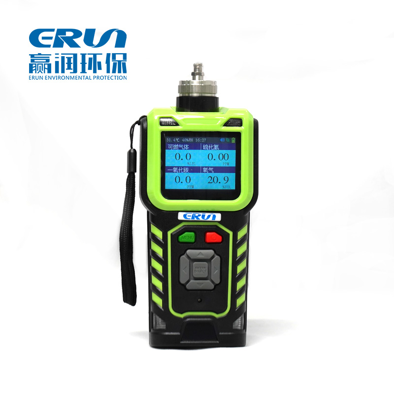 贏潤環保研發、生產的手持式泵吸型四合一多參數氣體報警儀ERUN-PG71S4能同時檢測1-4種可燃有毒氣體,可同時檢測氧氣、甲烷、硫化氫、一氧化碳或其他可燃有毒氣體,也可以配備溫度、濕度測量,檢測氣體種類超過500余種。