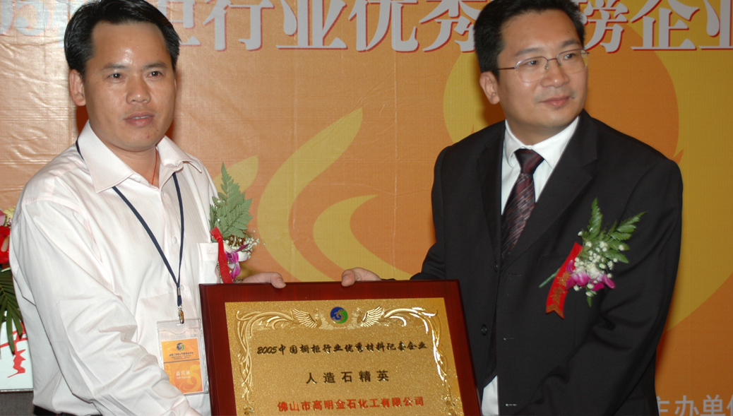 金石被評為“中國櫥柜行業優秀材料配套企業人造石精英”頒獎現場